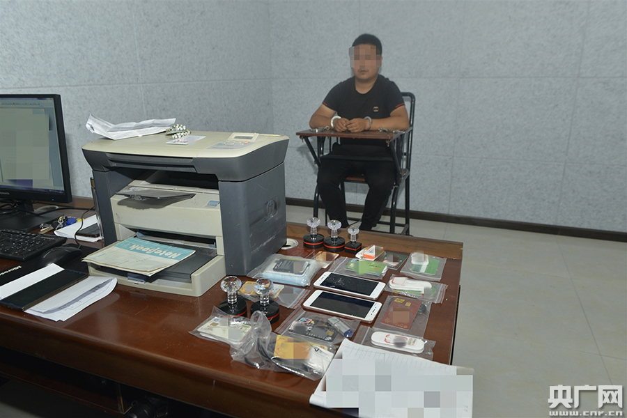 繳獲的非法證件以及作案工具(央廣網(wǎng)發(fā) 宜城公安局供圖)