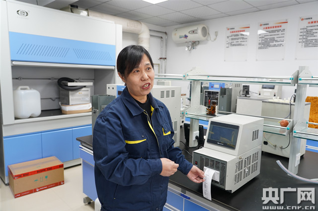 張曉梅介紹航油計(jì)量化驗(yàn)器材(央廣網(wǎng)見(jiàn)習(xí)記者 卜鵬 攝)