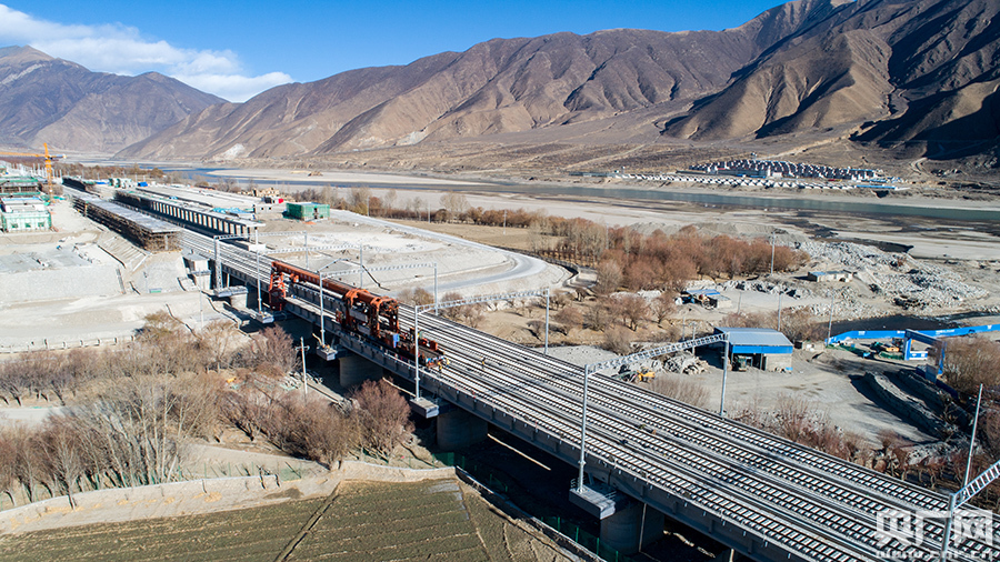 據(jù)了解,新建川藏鐵路拉薩至林芝段正線全長(zhǎng)435公里,線路16次跨越雅魯藏布江,地質(zhì)條件復(fù)雜,橋隧比高達(dá)75%,設(shè)計(jì)時(shí)速160公里,是西藏首條電氣化鐵路。中鐵十一局自正式鋪架以來(lái),目前已經(jīng)完成了119.3公里的正線鋪軌和1375孔的架梁任務(wù)。