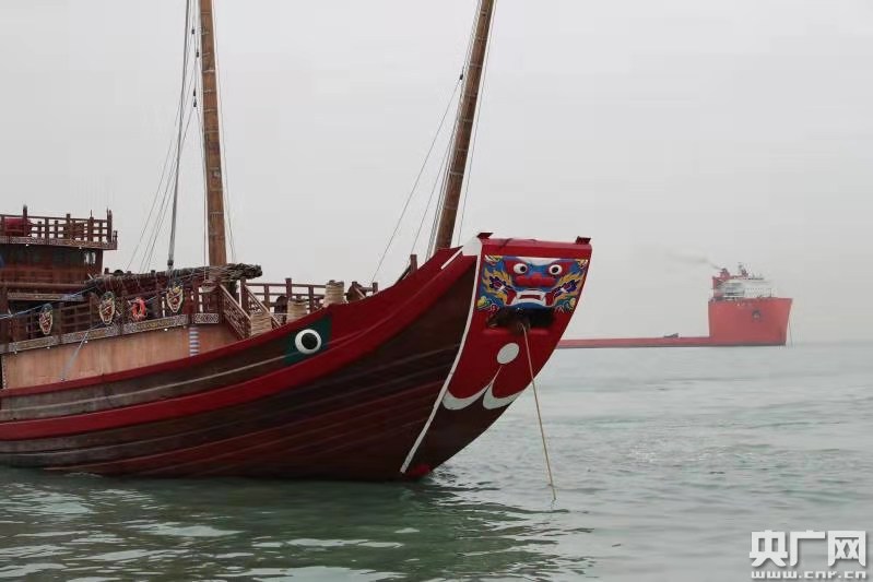 世界最大仿古航海木帆船“福寧”輪出境(央廣網(wǎng)發(fā) 通訊員供圖)