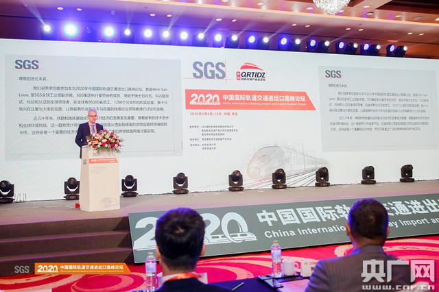 1月10日,2020中國(guó)國(guó)際軌道交通進(jìn)出口高峰論壇在青島召開,瑞士SGS全球副總裁Wim Van Loon致辭(央廣網(wǎng)記者 王偉 攝)