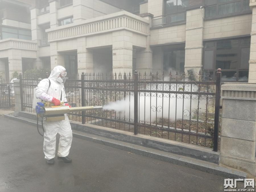志愿者在進(jìn)行社區(qū)噴霧消毒(央廣網(wǎng)發(fā) 王作巖攝)