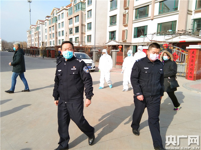 李強(左)奮戰(zhàn)在防控疫情第一線。(央廣網發(fā) 濱州市公安局濱城分局供圖)