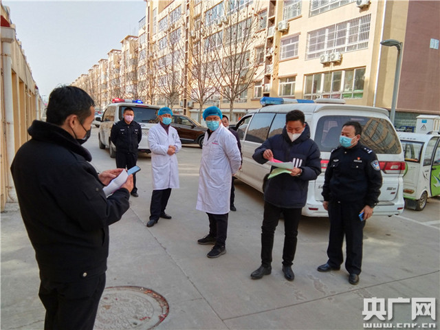 李強(右一)奮戰(zhàn)在防控疫情第一線。(央廣網發(fā) 濱州市公安局濱城分局供圖)