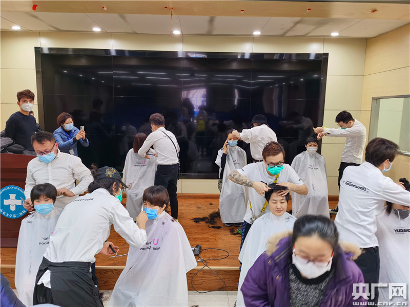從8:30開始,3個(gè)多小時(shí),13名美發(fā)師先后為60多名醫(yī)護(hù)隊(duì)員剪短了頭發(fā),讓他們英姿颯爽,“輕裝”上陣。