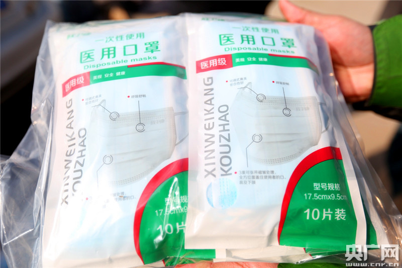 康迪醫(yī)療用品有限公司生產的口罩。(央廣網(wǎng)記者唐磊 攝)