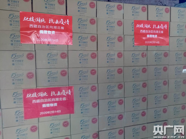 西藏自治區(qū)向湖北省捐贈牦牛肉、礦泉水等抗疫物資(央廣網(wǎng)記者 羅布次仁 攝)