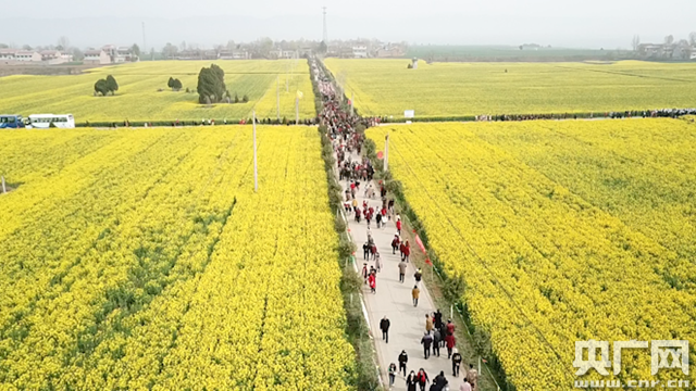 央廣網(wǎng)西安4月1日消息(記者劉濤 通訊員楊淵)3月31日,寶雞市岐山縣棗林鎮(zhèn)范家塬村千畝油菜花田間人頭攢動,來自岐山縣及毗鄰縣區(qū)的數(shù)萬群眾徜徉在金黃色的油菜花田,載歌載舞,盡情拍照,拉開了岐山縣棗林鎮(zhèn)油菜花觀賞節(jié)的序幕。