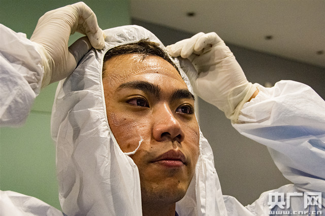 同樣堅(jiān)守崗位、投身一線的還有一名新檢查員。3月12日晚,載有234名旅客的航班中需留置進(jìn)一步觀察和送醫(yī)的有14名。該隊(duì)年紀(jì)最小的實(shí)習(xí)民警陳海,主動(dòng)承擔(dān)一線檢查的任務(wù),趕赴接送旅客最前沿最危險(xiǎn)的停機(jī)坪開(kāi)展前期處置,并進(jìn)入海關(guān)負(fù)壓倉(cāng)隔離場(chǎng)所負(fù)責(zé)發(fā)熱送醫(yī)旅客證件傳遞、清點(diǎn)、人證對(duì)照工作,幾個(gè)小時(shí)內(nèi)不停地往返于海關(guān)負(fù)壓倉(cāng)與邊檢驗(yàn)證臺(tái)之間,連接著發(fā)熱旅客和前臺(tái)檢查員。等航班查驗(yàn)完畢,才將穿了7個(gè)小時(shí)的防護(hù)服脫下,這時(shí)已是深夜一點(diǎn)。