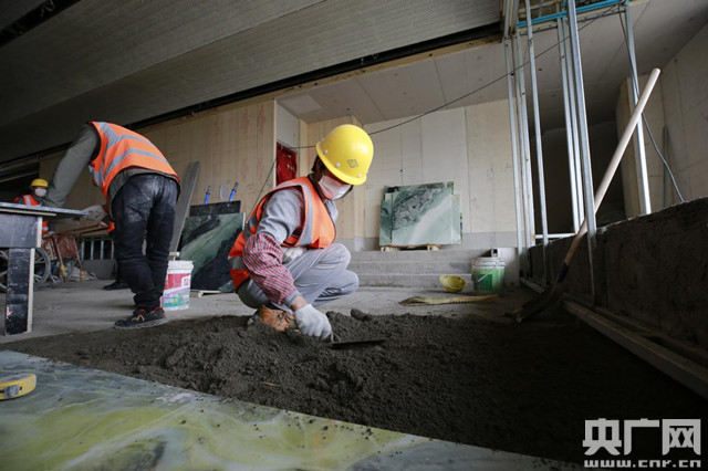 不只是房建工程在加快施工,機(jī)場(chǎng)內(nèi)部精裝修項(xiàng)目也恢復(fù)了往日的火熱建設(shè)場(chǎng)面。在北京大興國(guó)際機(jī)場(chǎng)航站樓北指廊的機(jī)場(chǎng)綜合樓精裝修工程施工現(xiàn)場(chǎng),為避免返場(chǎng)工人出現(xiàn)交叉感染,項(xiàng)目首先通過(guò)遠(yuǎn)端篩查掌握工人的健康狀況,返崗后施行封閉管理、集中觀察,進(jìn)入施工現(xiàn)場(chǎng)的工人,根據(jù)工序的不同,采取分區(qū)域封閉式的施工方式,最大限度避免工人交叉感染。華潤(rùn)建筑北京機(jī)場(chǎng)綜合樓精裝修工程項(xiàng)目負(fù)責(zé)人付斌介紹,目前,項(xiàng)目的返場(chǎng)人數(shù)達(dá)到500人,返場(chǎng)率達(dá)到90%。該項(xiàng)目的建筑面積達(dá)到14萬(wàn)平方米,項(xiàng)目主體已經(jīng)建成,現(xiàn)在處于樓內(nèi)精裝修階段。建成后涵蓋商業(yè)、辦公、酒店三個(gè)業(yè)態(tài)的綜合性辦公樓。