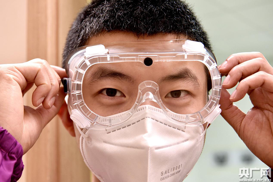 男護(hù)士但強(qiáng)穿戴防護(hù)裝備準(zhǔn)備進(jìn)入紅區(qū)(央廣網(wǎng)發(fā) 通訊員曾理 攝)
