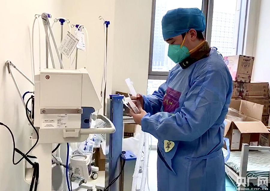 在隔離病區(qū),來(lái)自呼吸與危重癥醫(yī)學(xué)中心的李華軍,因?yàn)槟軏故觳僮骱粑鼨C(jī),所以他主要肩負(fù)小組里呼吸機(jī)管理的工作,確保每一位用呼吸機(jī)的患者都能正常運(yùn)轉(zhuǎn),給他們講解呼吸機(jī)的使用方法和注意事項(xiàng)。