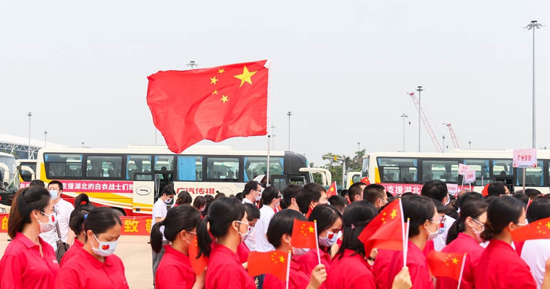 廣東省援助湖北武漢應(yīng)對新冠肺炎疫情醫(yī)療隊183人圓滿完成援助任務(wù),乘機抵達廣州(央廣網(wǎng)發(fā) 通訊員供圖)