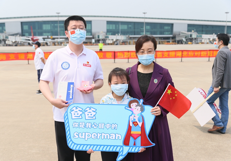 “經(jīng)過這段大家都非常不容易的歲月,我們終于看到武漢這座英雄城市的解封,看到她在慢慢復(fù)蘇,F(xiàn)在終于可以回家,我終于可以帶著我的全體戰(zhàn)友毫發(fā)無損的回家,我想這是送給他們家人最好的禮物!濒叽蟾揭辉旱谌踽t(yī)療隊領(lǐng)隊許典雙說。