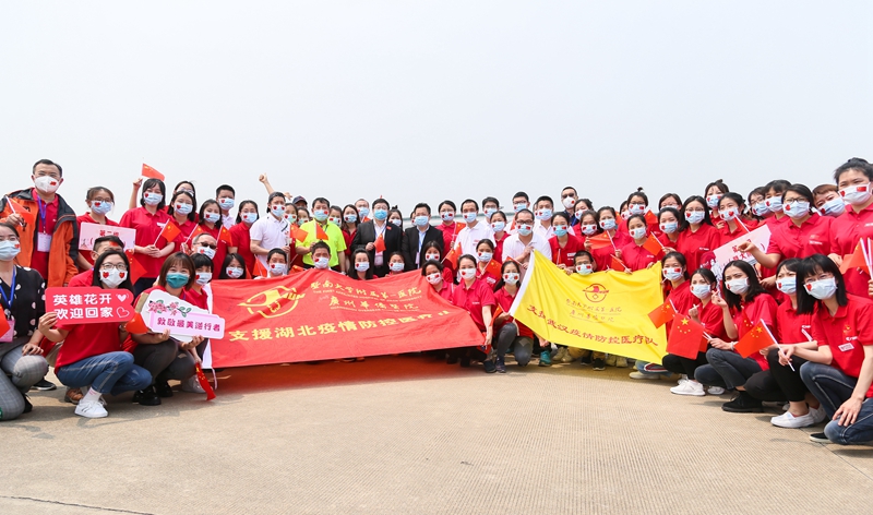 “大家主動請纓,英勇逆行,全身心投入到抗擊疫情第一線,成為打贏湖北戰(zhàn)‘疫’的精干力量,用行動展現(xiàn)了醫(yī)護工作者的責(zé)任和擔(dān)當(dāng)。大家不愧是勇敢的白衣戰(zhàn)士,不愧是廣東的優(yōu)秀兒女,不愧是黨和人民的英雄!睆V東省衛(wèi)生健康委副主任周紫霄說,希望隊員們安心休養(yǎng),調(diào)整好身心狀態(tài)。接下來,要把支援湖北工作的好經(jīng)驗好做法運用到廣東疫情防控和救治工作中來,以更加飽滿的精神、更加昂揚的斗志,為廣東打贏疫情防控阻擊戰(zhàn)貢獻更大力量。