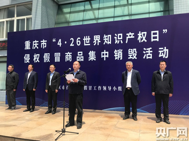 重慶市“4·26世界知識(shí)產(chǎn)權(quán)日”侵權(quán)假冒商品集中銷毀活動(dòng)啟動(dòng)儀式(央廣網(wǎng)記者 趙聰聰 攝)