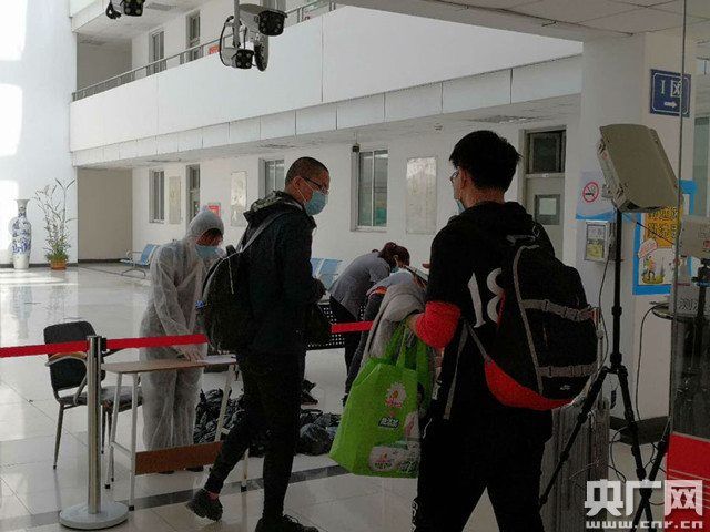 西安電子科技大學(xué)返校學(xué)生通過(guò)測(cè)溫進(jìn)入宿舍樓(央廣網(wǎng)記者 雷愷 攝)