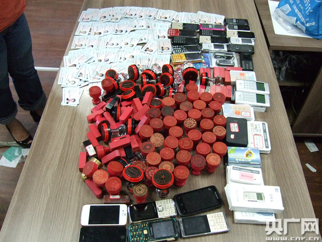 警方查獲印章等涉案物品(央廣網(wǎng)發(fā) 警方供圖)