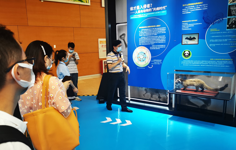 展覽共分“病毒的自白”“病毒和人類的演化博弈”“我們的未來”三個(gè)展區(qū)!安《镜淖园住币圆《镜目谖,帶領(lǐng)觀眾認(rèn)識(shí)了解病毒的特性、來源、繁殖及生存策略等基本知識(shí),以及冠狀病毒家族的特點(diǎn)和病毒對(duì)人類的一些積極作用;“病毒和人類的演化博弈”以故事的視角展開病毒如何與人類演化博弈的過程,呈現(xiàn)人類戰(zhàn)勝病毒的各種法寶,以及我們面對(duì)新型冠狀病毒肺炎的挑戰(zhàn)與啟示;“我們的未來”從我們都是地球生態(tài)系統(tǒng)組成部分的視角,激發(fā)大家重新審視人類與自然的關(guān)系,引發(fā)對(duì)未來的思考。