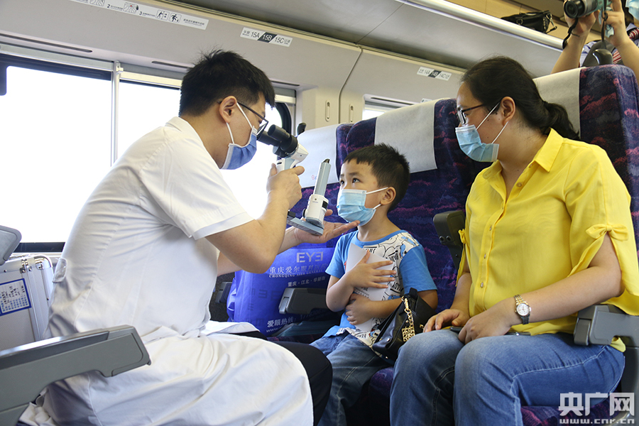 央廣網(wǎng)重慶6月6日消息(記者趙聰聰 通訊員鐘潔 趙思云)“近距離用眼過多和戶外活動時間過少,是導(dǎo)致近視的主要環(huán)境因素,疫情期間許多孩子都存在這樣的情況,因此需要增加戶外時間,讓孩子暴露在大自然光線環(huán)境下。”6月5日,重慶客運(yùn)段的C6004次列車上,重慶某專業(yè)眼科醫(yī)院黨員志愿者高陽醫(yī)生對前來咨詢的黃女士說道。