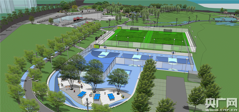 在建中的彈子石社區(qū)體育文化公園設(shè)計(jì)方案部分區(qū)域效果圖(央廣網(wǎng)發(fā) 圖片由重慶市規(guī)劃和自然資源局提供)