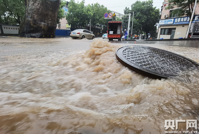 洪水沖開下水道井蓋(央廣網(wǎng)發(fā) 圖片由萬州區(qū)宣傳部提供)