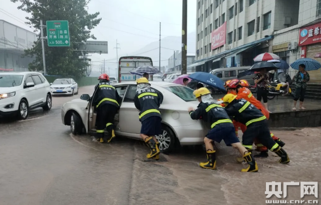 消防隊員幫助被困車輛離開(央廣網(wǎng)發(fā) 圖片由萬州區(qū)宣傳部提供)