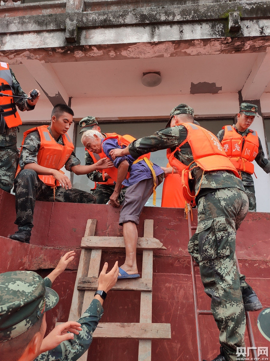 正在轉(zhuǎn)移受困群眾(央廣網(wǎng)記者 劉濤 攝)