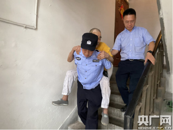 所長背老人下樓(央廣網(wǎng)發(fā) 巴南區(qū)公安分局供圖)