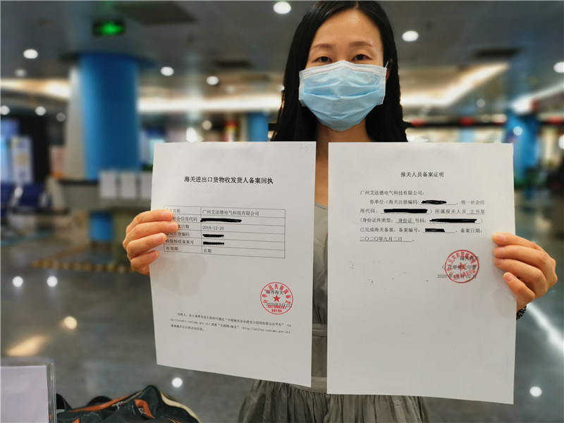 “沒想到這么方便,我本打算來咨詢一下,再看去哪里辦理,沒想到意外地一次性將進出口貨物收發(fā)貨人信息變更業(yè)務(wù)辦成了,不用再跑一次越秀區(qū)政務(wù)服務(wù)中心了!睆V州艾法德電氣科技有限公司法定代表人王書琴十分開心。