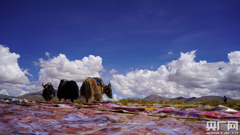 央廣網(wǎng)廣州9月20日消息(記者何偉奇)83件巨幅畫作,由57頭牦牛馱負著,沿著山坡曲線,在陽光、藍天、白云、雪山、曠野和風共同創(chuàng)構(gòu)的場域中,搭設(shè)成一道寄予著人們美好祈愿的彩虹,面對珠穆朗瑪山峰徐徐展開。這是華南理工大學(xué)建筑學(xué)院美術(shù)教研室主任、視覺藝術(shù)實驗室主任王義明帶領(lǐng)著廣東藝術(shù)團隊9月18-19日在西藏日喀則崗嘎鎮(zhèn)展開的人與自然合力創(chuàng)作。