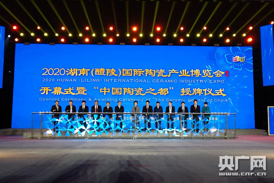 央廣網(wǎng)醴陵9月29日消息(記者姜文婧 通訊員李景蘭 彭麗娜)9月28日晚,2020湖南(醴陵)國際陶瓷產(chǎn)業(yè)博覽會在中國陶瓷谷五彩陶瓷特色小鎮(zhèn)開幕。在開幕式上,湖南醴陵獲“中國陶瓷之都”授牌。