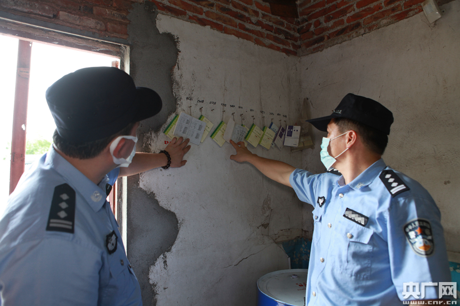 緝私警察檢查非法加油點內(nèi)的加油記錄(央廣網(wǎng)發(fā) 廣州海關(guān)供圖)