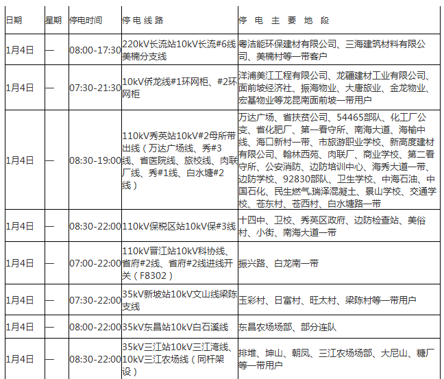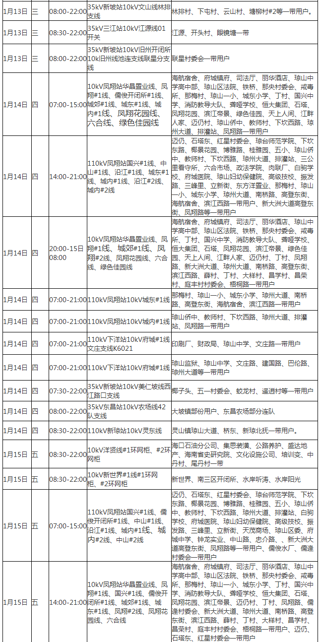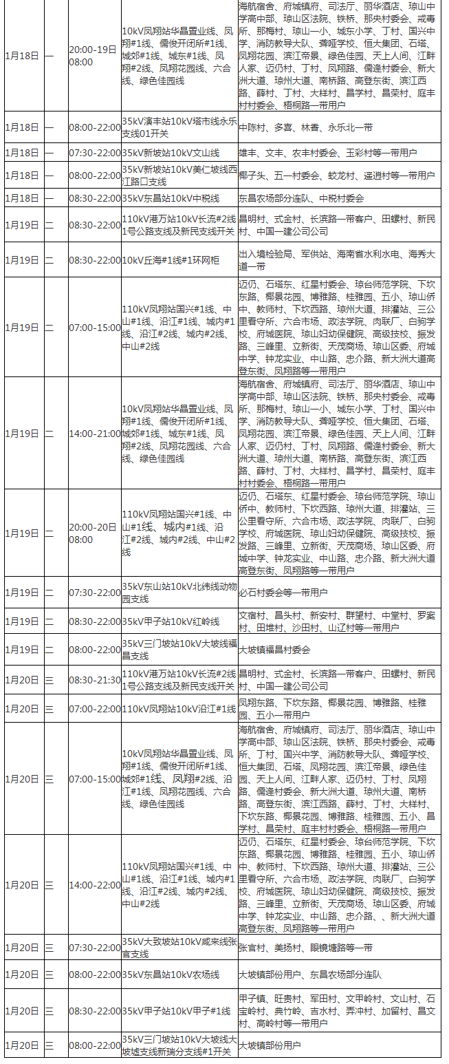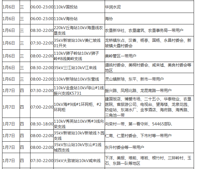 提前做準(zhǔn)備!?2016年1月4日-20日停電線路公布[計劃表]