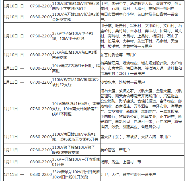 海口網(wǎng)12月27日消息(記者光明)?诠╇娋纸裉彀l(fā)布2016年1月4日至20日停電公告,以進行供電線路改造升級、設(shè)備消缺維護。?诓糠志用裼秒妼⑹艿接绊懀?zhí)崆白龊脺?zhǔn)備。