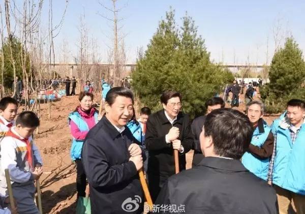 圖為:2015年4月3日,北京朝陽(yáng)區(qū)孫河鄉(xiāng),習(xí)近平同大家一起植樹(shù)。當(dāng)天,七常委參加首都義務(wù)植樹(shù)活動(dòng)。