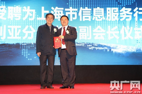 上海市金融信息行業(yè)協(xié)會(huì)名譽(yù)會(huì)長(zhǎng)、上海信息服務(wù)業(yè)行業(yè)協(xié)會(huì)黨委書記馬海湧為胡立勇先生頒發(fā)上海市信息服務(wù)業(yè)行業(yè)協(xié)會(huì)澳大利亞分會(huì)常務(wù)副會(huì)長(zhǎng)聘書。