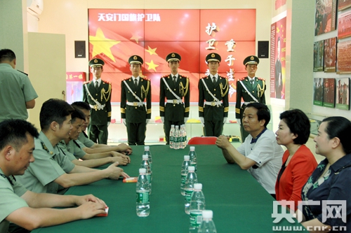 央廣網(wǎng)北京7月28日消息(記者 于聞)“八一”建軍節(jié)來臨之際,海南省婦聯(lián)主席劉錦、海南省賦蓮婦女兒童活動中心主任許棟松一行帶著數(shù)百萬海南婦女兒童的心聲與祝福,攜手半月談雜志社副總經(jīng)理、中國公益形象大使王京忠先生,27日來到北京天安門國旗護(hù)衛(wèi)隊駐地,看望和慰問國旗護(hù)衛(wèi)隊官兵并與衛(wèi)隊政委王建華等進(jìn)行了親切友好的座談。海南省婦聯(lián)機(jī)關(guān)干部一同參加了慰問。