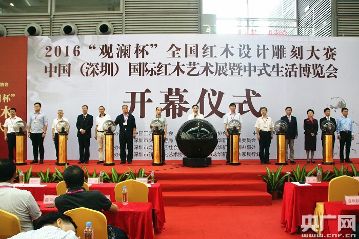 央廣網(wǎng)深圳9月24日消息(記者于揚(yáng))9月23日,2016“觀瀾杯”全國(guó)紅木設(shè)計(jì)雕刻大賽、第二屆中國(guó)傳統(tǒng)家具發(fā)展高峰論壇及第四屆中國(guó)(深圳)國(guó)際紅木藝術(shù)展暨中式生活博覽會(huì)在深圳會(huì)展中心隆重開(kāi)幕,形成“一賽一展一論壇”的強(qiáng)大陣容。中國(guó)家具協(xié)會(huì)、中國(guó)工藝美術(shù)協(xié)會(huì)、中國(guó)收藏家協(xié)會(huì)、深圳市文體旅游局和龍華新區(qū)管理委員會(huì)之所以要聯(lián)合舉辦2016“觀瀾杯”全國(guó)紅木設(shè)計(jì)雕刻大賽、第二屆中國(guó)傳統(tǒng)家具發(fā)展高峰論壇,就是要與第四屆中國(guó)(深圳)國(guó)際紅木藝術(shù)展暨中式生活博覽會(huì)一起,形成強(qiáng)大影響力和導(dǎo)向力,打造中國(guó)紅木家具行業(yè)的“三駕馬車(chē)”,引領(lǐng)行業(yè)前進(jìn)。