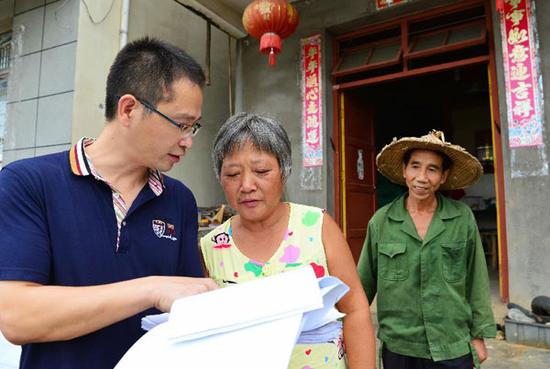 9月12日,古田縣紀(jì)委工作人員(左)在水口鎮(zhèn)灣邊村低保戶劉興龍家了解扶貧資金領(lǐng)取情況。近年來,福建省級扶貧開發(fā)重點縣古田縣紀(jì)委將查處扶貧領(lǐng)域違紀(jì)違規(guī)問題,作為整治侵害群眾利益的不正之風(fēng)和腐敗問題的重點工作,以“精準(zhǔn)監(jiān)督”為“精準(zhǔn)扶貧”保駕護航,努力杜絕扶貧領(lǐng)域虛報冒領(lǐng)、截留私分、揮霍浪費等問題發(fā)生。新華社記者魏培全攝
