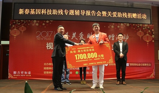 央廣網(wǎng)深圳1月25日消息(記者黃倩)昨天(24日),“新春基因科技助殘專題輔導(dǎo)報(bào)告會(huì)暨關(guān)愛助殘捐贈(zèng)活動(dòng)”在深圳市殘疾人綜合服務(wù)中心舉行,價(jià)值170萬元的眼部精密醫(yī)學(xué)檢查評(píng)估券和框架助視器為深圳視障人士送去了一份暖心的新春禮物,《基因科技助殘》主題報(bào)告更讓人們了解了如何運(yùn)用前沿科學(xué)技術(shù)預(yù)防疾病及避免已知出生缺陷。