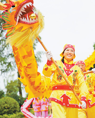 10月4日,舞龍隊成員在江蘇南通市嗇園進(jìn)行傳統(tǒng)民俗舞龍表演,歡度中秋佳節(jié)。