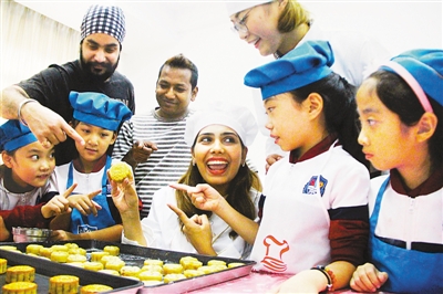 中秋節(jié)之際,河北唐山市豐潤區(qū),來自英國、印度、孟加拉國的外教老師與當(dāng)?shù)氐暮⒆觽円黄鹬谱髟嘛,體驗中華民族傳統(tǒng)文化。