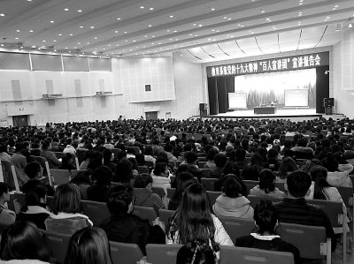 沒有空座,學(xué)生們便擠在報告廳過道里聽;聽說來了專家,要求進現(xiàn)場聽報告的師生人數(shù)劇增,學(xué)校不得不將地點換到最大的報告廳……連日來,由教育部黨組書記、部長陳寶生任團長,教育部黨組成員、中管高校黨委書記、部分教育系統(tǒng)十九大黨代表、地方黨委教育工作部門負責同志及數(shù)十名高校哲學(xué)社會科學(xué)專家等組成的“百人宣講團”奔赴全國各地宣講,在師生中掀起了學(xué)習(xí)十九大精神的熱潮,也由此展開了一幅寫好教育奮進之筆行動,把習(xí)近平新時代中國特色社會主義思想轉(zhuǎn)化為優(yōu)先發(fā)展教育事業(yè)的生動畫卷。