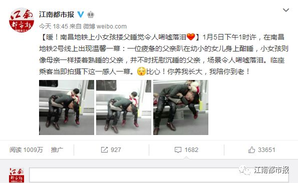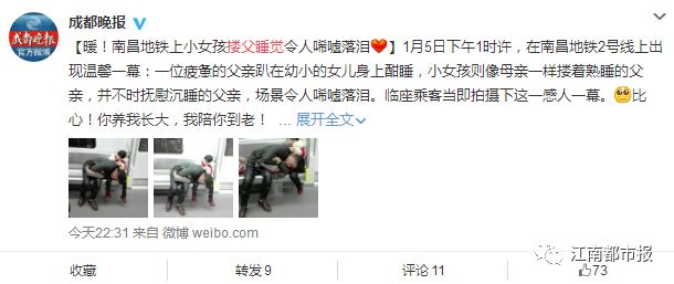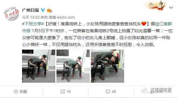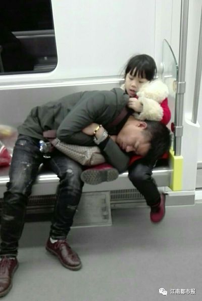 南昌地鐵上小女孩摟父睡覺令人唏噓落淚