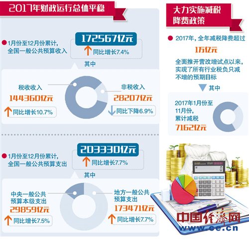 “2017年,我國(guó)實(shí)施更加積極有效的財(cái)政政策,降低企業(yè)稅費(fèi)負(fù)擔(dān),加大財(cái)政支出結(jié)構(gòu)調(diào)整力度,提高財(cái)政資金效益,全年財(cái)政收支情況較好,有力促進(jìn)了經(jīng)濟(jì)平穩(wěn)健康發(fā)展和社會(huì)和諧穩(wěn)定!必(cái)政部國(guó)庫(kù)司負(fù)責(zé)人婁洪表示。