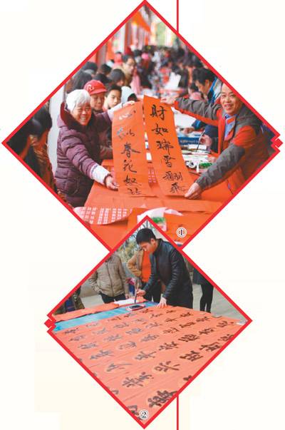 圖①:書(shū)法家為江西贛州群眾送去春聯(lián)! £惖亻L(zhǎng)攝