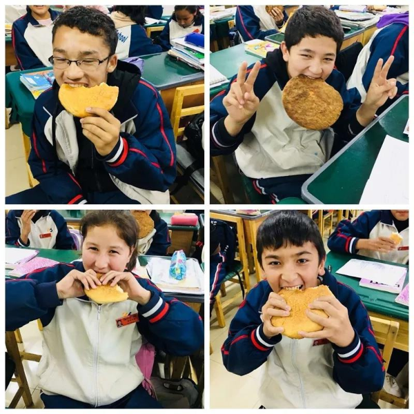“吃馕者,覺之香,吃馕人,思故鄉(xiāng)……”同學(xué)們吃著來自岳普湖縣的馕,調(diào)皮地“吟詩作賦”。