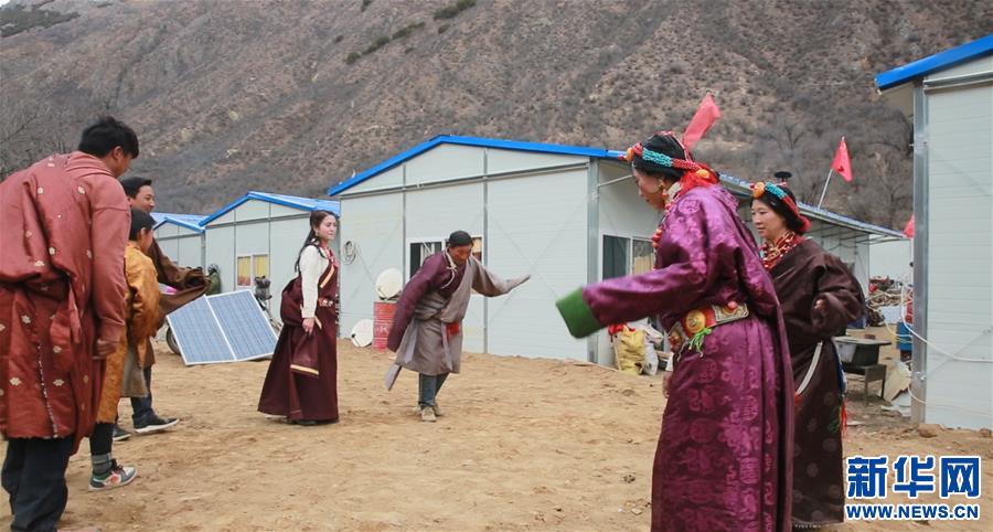 在康扎西安置點,村民們圍成圈跳鍋莊迎接新年(1月31日攝)。 新華社發(fā)(陳皎巴特 攝)