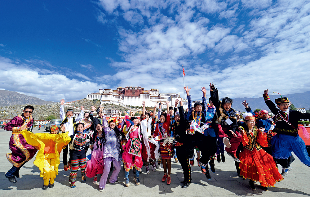 2012年9月27日,各族青年在布達(dá)拉宮廣場(chǎng)歡呼合影 覺(jué)果攝